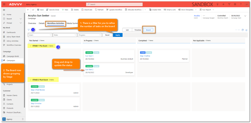 UPDATED Workflow Activity Kanban board – Features