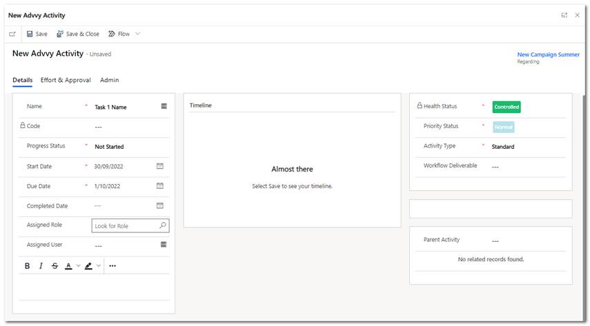 Previously campaigns needed to have a minimum set of criteria completed before it was created such as a Campaign Name, a Start and end date, a Client and a Workflow. As such, a workflow needed to be already predefined as a template in Advvy to allow the campaign to proceed.