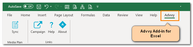 The Advvy Add-In for Excel is an Office 365 “Add-in” that enables data to be transferred from an Excel based media plan to the Advvy Application.