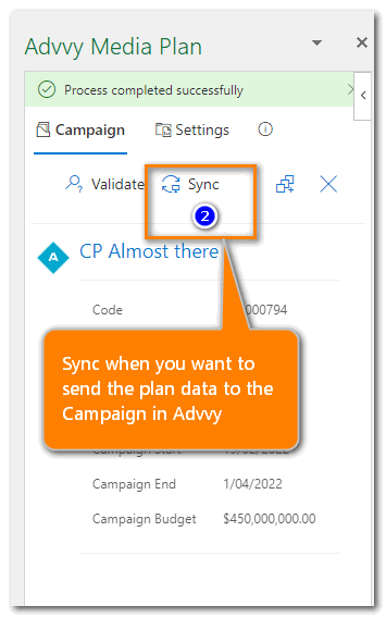 - Validate & Sync your plan data to the Advvy Campaign