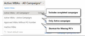 Note: a Campaign may have more than one MBA attached to it – each time the Create NEW MBA is used a new MBA is created with a new MBA number that can be tracked in this view.
